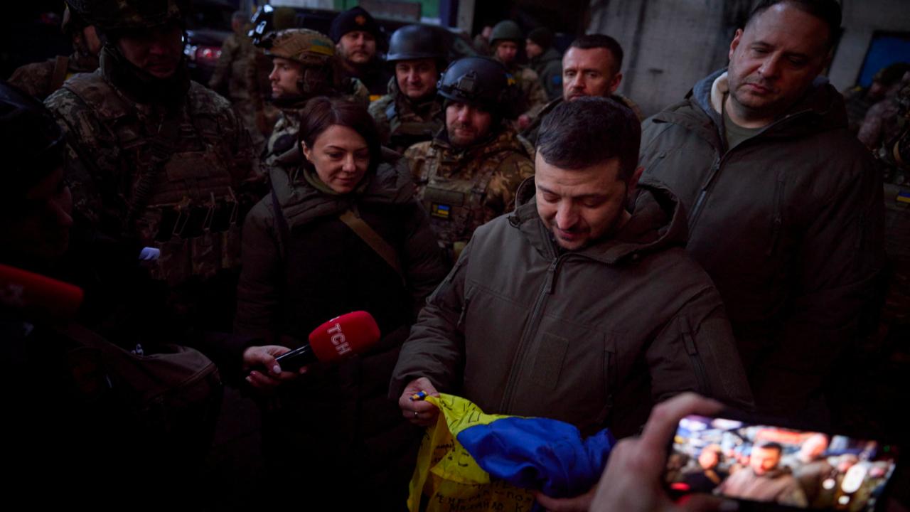 Zelenskiy’s office released video footage showing the president, dressed in khaki, handing out medals to soldiers inside a ramshackle industrial complex in the eastern Ukrainian Donbas region.